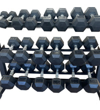 The lethal fitness 5-50 dumbbell rack will hold your entire set of 5 through 50 in increments of 5's with ease and stability.