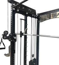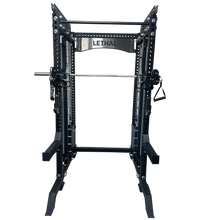 The Lethal SFPR5 is your one stop shop to not only doing all your workouts on one machine, but also getting to boast of having the heaviest duty all-in-one combo on the market today. This is our best seller for a reason. It uses both 7 and 11 gauge steel, 3” x 3” tubing, laser cut numbering at each hole and breathtaking monster 1” bolts and hardware connecting it throughout. You will not find a beefier version anywhere. This is the same build you would see if you walked in to an NFL locker room. Mix that in with the low price we offer it at and you have what you call the best deal anywhere on a machine like this. With the attachments we have available for this unit, you can literally do it all with this one piece. For the listed price, it comes exactly as it’s shown pictured. We offer it in 3 colors: Black, Red and Raw Clearcoat